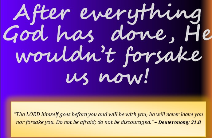God has put His spiritual blood, sweat and tears into creating us. He’s spent His time to mold us. He’s even given us His breathe so that we might live. He left His word so that we might fill up on His knowledge and wisdom. He gives us His anointing that seals us with the power to cast out, call down and destroy strongholds. We’re granted new mercies, every day that keeps us in our right mind. So, what makes you think He’ll leave us without a thought about our wellbeing? After everything He’s sacrifice for us, why would He abandon us now? After everything …. God said to Jacob, while he dreamed in Genesis 28:15, “I am with you and will watch over you wherever you go, and I will bring you back to this land. I will not leave you until I have done what I have promised you.” And I just believe and trust God enough to know this is meant for us too, even now. Beloved, whoever you are, God has not left you. He has too much invested in you to just abandon you. You just have to believe that even when He doesn’t show up or say anything, He’s still there. This pain, this momentary moment of feeling defeated and this dark place you’re in, you’re not alone. God is always there. After everything, are you willing to trust Him?