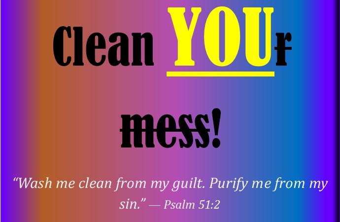 Baby, it’s time to clean up your mess. Yea! It’s time you stop crying over the spilled milk of stale memories and clean it up. It’s time you stop walking pass the garbage bag of guilt, throw it out. Open the closet and bring out those suitcases of suffering, it’s time to throw them out. That closet of chaos that’s holding the memories of past mistakes, throw them out. Those old text, dm’s and inbox messages; delete them. Those pictures, erase them. Stop stalking his/her page. Stop friending everybody he/she dates. Stop showing up at his/her church. It’s time to clean up. You stink! Baby, you stank! Have you seen the Febreze commercials that say, “You smell this but your friends smell this?” This the same way with you because you’ve become attached to the mess so you no longer smell that it stinks but it does. This is why you need to get up and cleanup!