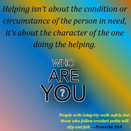 Yet, here comes this Samaritan who takes pity on the man. A Samaritan who didn’t fool with the Jews because the Jews didn’t mess with them. However, he goes out of his way to bandage this man’s wounds, puts him on a donkey, takes him to a nearby inn and then pays for him to stay there until he gets well. A Samaritan who by culture wasn’t fitting to even eat with. Oh but I’ve come to understand this … Helping someone isn’t about the condition or circumstance of the person in need but it’s really about the character of you whose doing the helping. This is why God will allow things to fall in front of you. God needs to test your character to see if you’re really about this life! God needs to know if you’ll really help, like you claim. God needs to see if you’ll go like you say you will. Beloved, God is simply checking to see if there’s a fire, within you, or if it’s all smoke. This is why, when it comes to helping, it is about you! God can heal, deliver, provide and set free without you but He’ll use you to manifest things simply to see if your character is worthy.