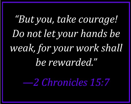 “But you, take courage! Do not let your hands be weak, for your work shall be rewarded.” —2 Chronicles 15:7