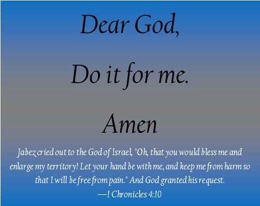 What’s my point? Sometimes you have to let the Holy Ghost take over and get your prayer to places you’re too big to go. Put some weight on it, some bass in your voice and let the spirit of the Lord have His way!
