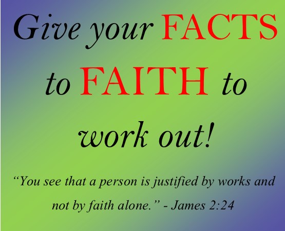 My car was repossessed – fact. I know God will provide – faith. (“And my God will supply every need of yours according to his riches in glory in Christ Jesus.” – Philippians 4:19)