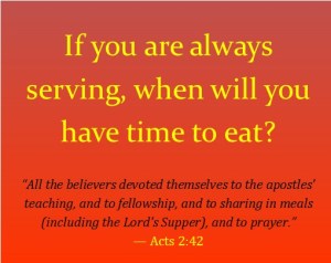 Think about it. When you are a professional in whatever field of study you are in, do you not have to be recertified every now and then? For a teacher, they have to come from in front of the class to now be the student. For a preacher/leader, you have to sometimes step down from the pulpit and be a pupil. This isn’t done as a mark against you but sometimes you need to be taught/fed too because if you continually serve, when will you have time to eat? Yes, I know you’re in leadership but sometimes you need to sit down because if you don’t, you just may miss the lesson in the listening. This is why the bible says in Proverbs 9:9, “Give instruction to a wise man, and he will be still wiser; teach a righteous man, and he will increase in learning.” Taking a moment to refuel (being served) will not weaken your witness but it will strengthen your service.