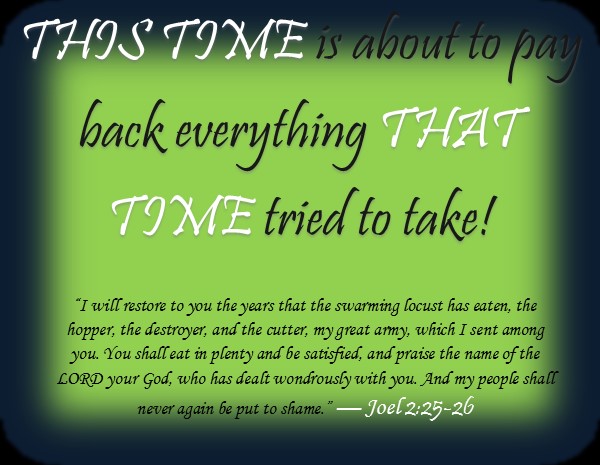 Yet, the only way you make it to THIS TIME, is by staying in that time. What’s that time? That time when you didn’t know how you’d make it. That time when you thought you wouldn’t survive the sickness. That time you didn’t think you’d make it out the abusive marriage. That time you couldn’t see how you’d face tomorrow. That time you lost everything. That time when you were evicted. That time disease took your sight. That time your womb was shut. That time your account was overdrawn day after day. That time you didn’t have a car, house, joy or hope. That time you were counted out. That time you were laughed at and mocked. That time when nothing made sense. Oh but because you held on that time, God is about to do it for you this time. When is this time? When you tell God like David did in Psalm 31:15, “My times are in your hand; rescue me from the hand of my enemies and from my persecutors!” And when you understand like Daniel in Daniel 2:20-22, “Daniel answered and said: “Blessed be the name of God forever and ever, to whom belong wisdom and might. He changes times and seasons; he removes kings and sets up kings; he gives wisdom to the wise and knowledge to those who have understanding; he reveals deep and hidden things; he knows what is in the darkness, and the light dwells with him.” Will you believe, trust and hope in God this time? For this time is about to reap for you a harvest of overflow that is about to blow your mind.