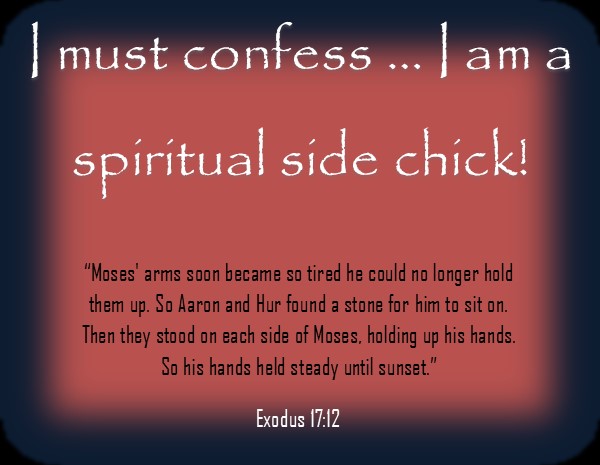 In Exodus 17, when the Israelites find themselves fighting the Amalekites who struck Israel in a blind attack, Moses says to Joshua to take some men and fight because “Tomorrow I will stand on the top of the hill with the staff of God in my hand (Exodus 17:9).” However, Moses finds that standing with his arms outstretched, for a period of time can becoming tiring. Yet Moses knew as long as his arms were lifted, Israel would prevail but if he dropped them, Israel would lose. Oh but then, something happened. The bible says in Exodus 17:12, “When Moses’ hands grew tired, they took a stone and put it under him and he sat on it. Aaron and Hur held his hands up–one on one side, one on the other–so that his hands remained steady till sunset.” Aaron and Hur willing took their place beside Moses. They did not try to take Moses’ place, they stood beside him holding up his arms. And because they did, the bible says in Exodus 17:13, “As a result, Joshua overwhelmed the army of Amalek in battle.” Sometimes, my place is on the side and if that means praying for my sister as she prepares to open her school, I will do it. If that means carrying my uncle’s bible while he pastors, I will do it. If that means fasting for you, I will do it. If it means getting up early to war on your behalf, I will gladly do it. This is why I can confess that I am sometimes a spiritual side chick and proud of it.