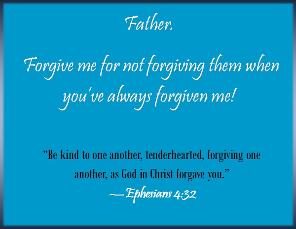 “For if you forgive others their trespasses, your heavenly Father will also forgive you, but if you do not forgive others their trespasses, neither will your Father forgive your trespasses.” Matthew 6:14-15