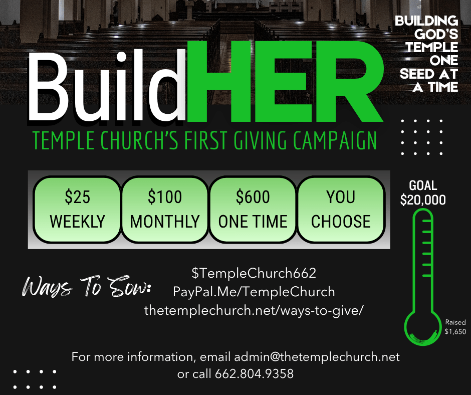 With that in mind, we are excited to announce our very first giving campaign: #BuildHER, where “HER” represents Godâs Temple.